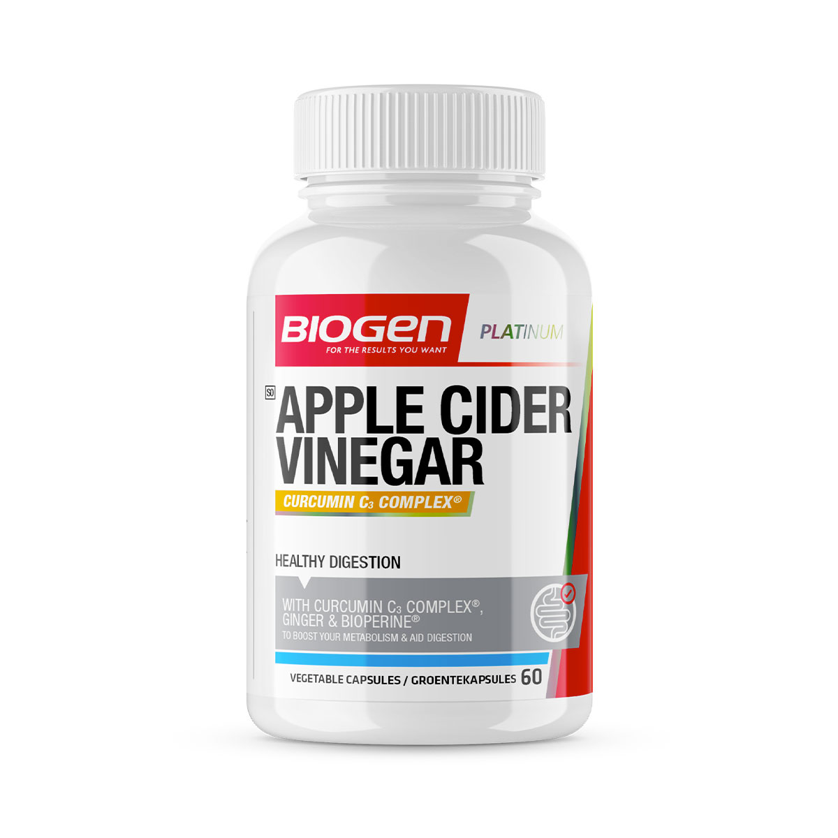 Biogen Apple Cider Vinegar with Curcumin C3 Complex®, Ginger and BioPerine®, to boost your metabolism and supports healthy digestion.