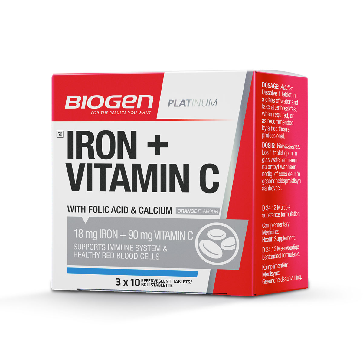 Biogen Iron + Vitamin C Fizzy with folic acid and calcium provides iron in a highly absorbable organic complex. It’s gentle on the stomach and fast acting. The Vitamin C also plays an important role in the iron absorption process. This product may help to combat tiredness and fatigue while also ensuring balanced iron levels in the body.